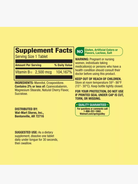 B12 Spring Valley 2500 Mg 120 Capsulas
